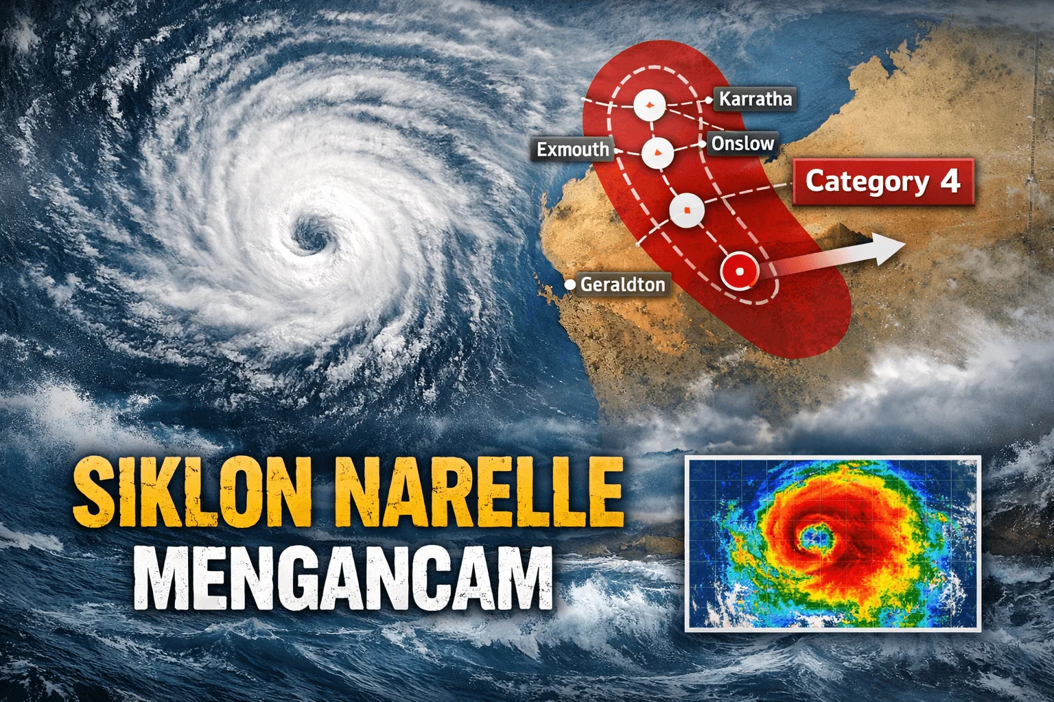 Siklon Tropis Narelle yang saat ini berada di kawasan Australia Barat terus menunjukkan intensitas tinggi dan memberikan dampak tidak langsung terhadap kondisi cuaca di Indonesia.
